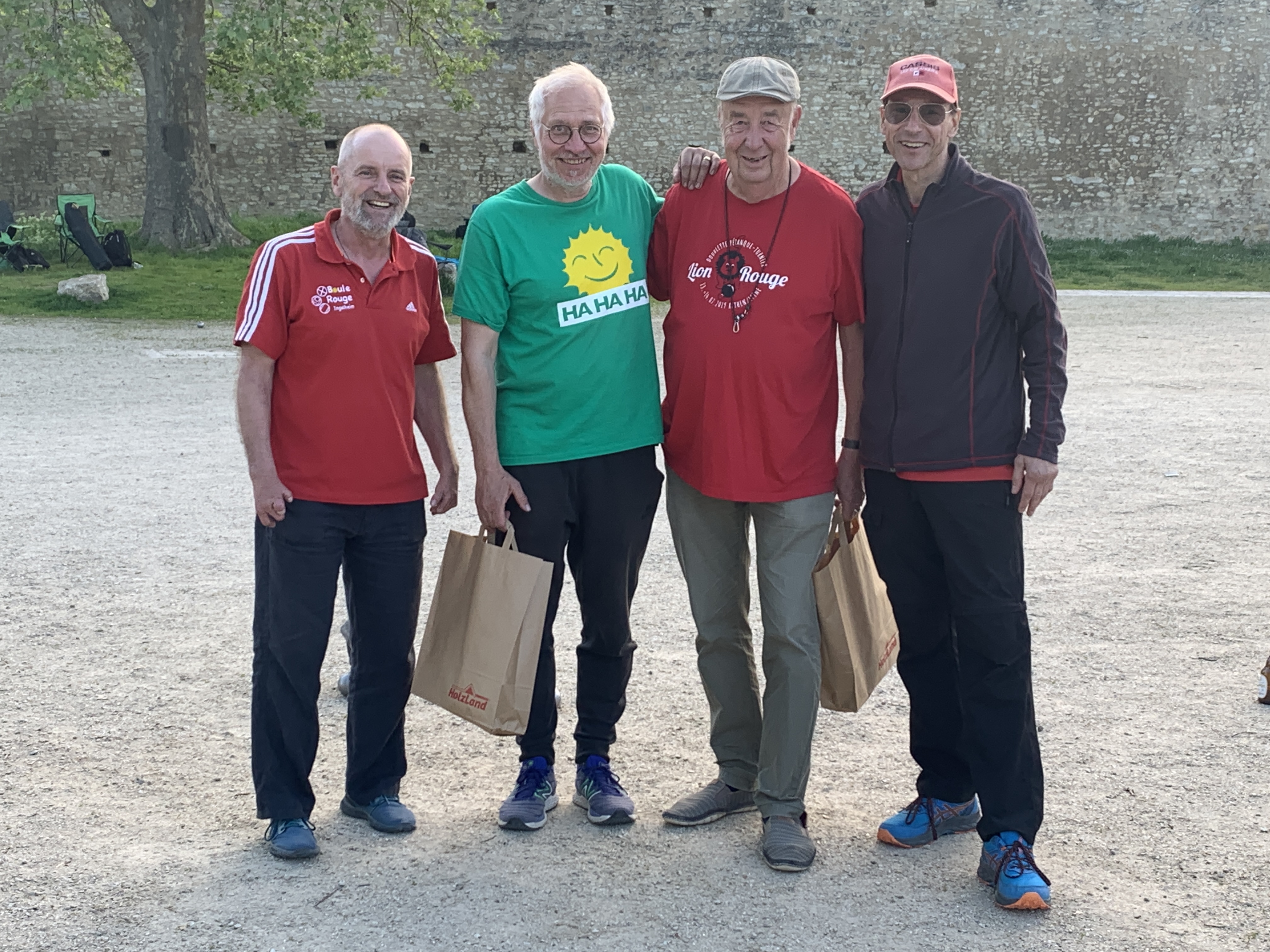 v.l.n.r. Thomas Thull (Boule-Rouge Ingelheim), 3. Platz Michael Weber (LBJ Wiesbaden ), 3. Platz Jens Dengler (Dreieichenhain), Stefan Bunge (Boule-Rouge Ingelheim)