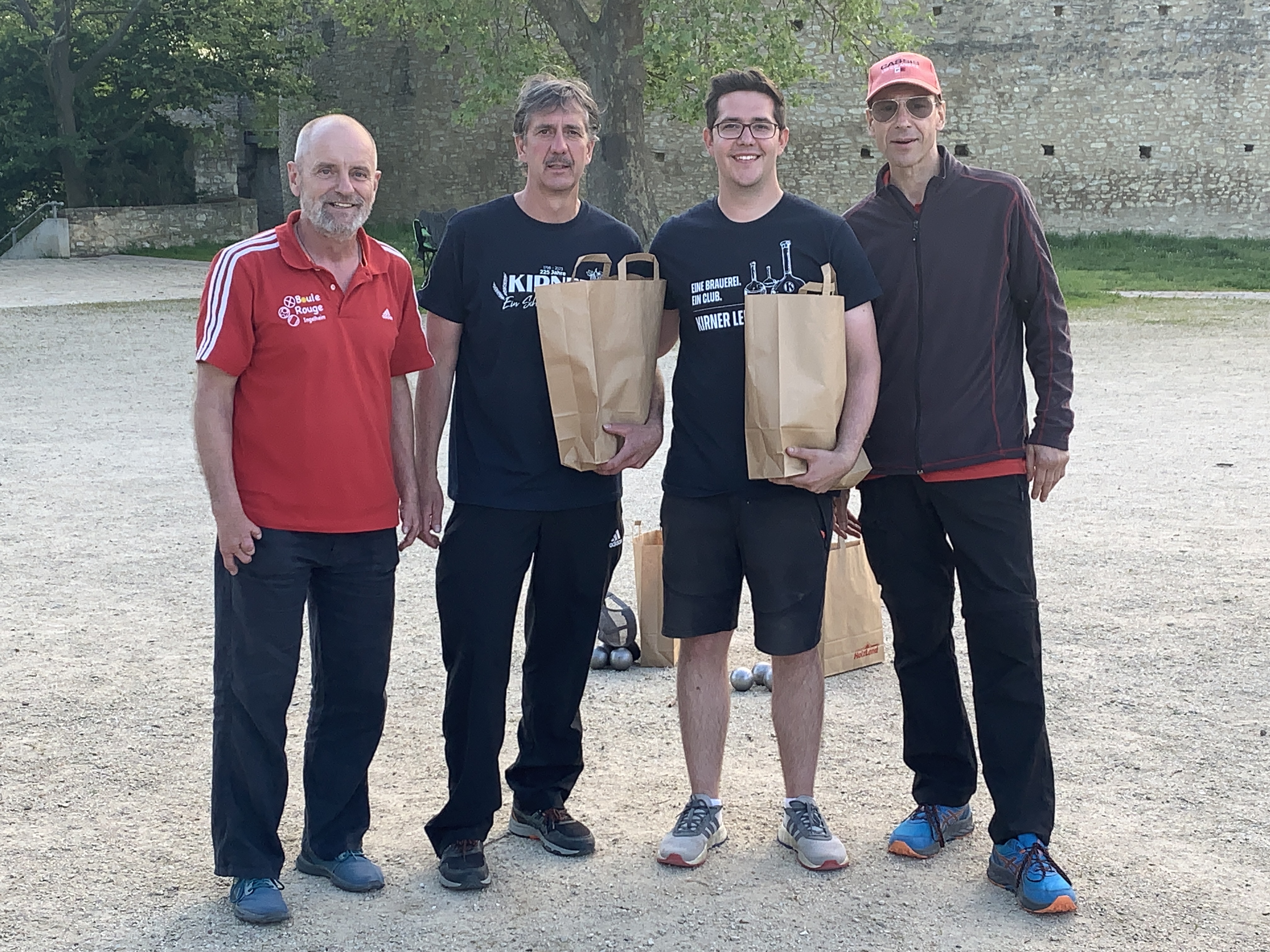 v.l.n.r. Thomas Thull (Boule-Rouge Ingelheim), 2. Platz Thomas Brumm (SV Meckenbach), 2. Platz Sian Brumm (SV Meckenbach), Stefan Bunge (Boule-Rouge Ingelheim)